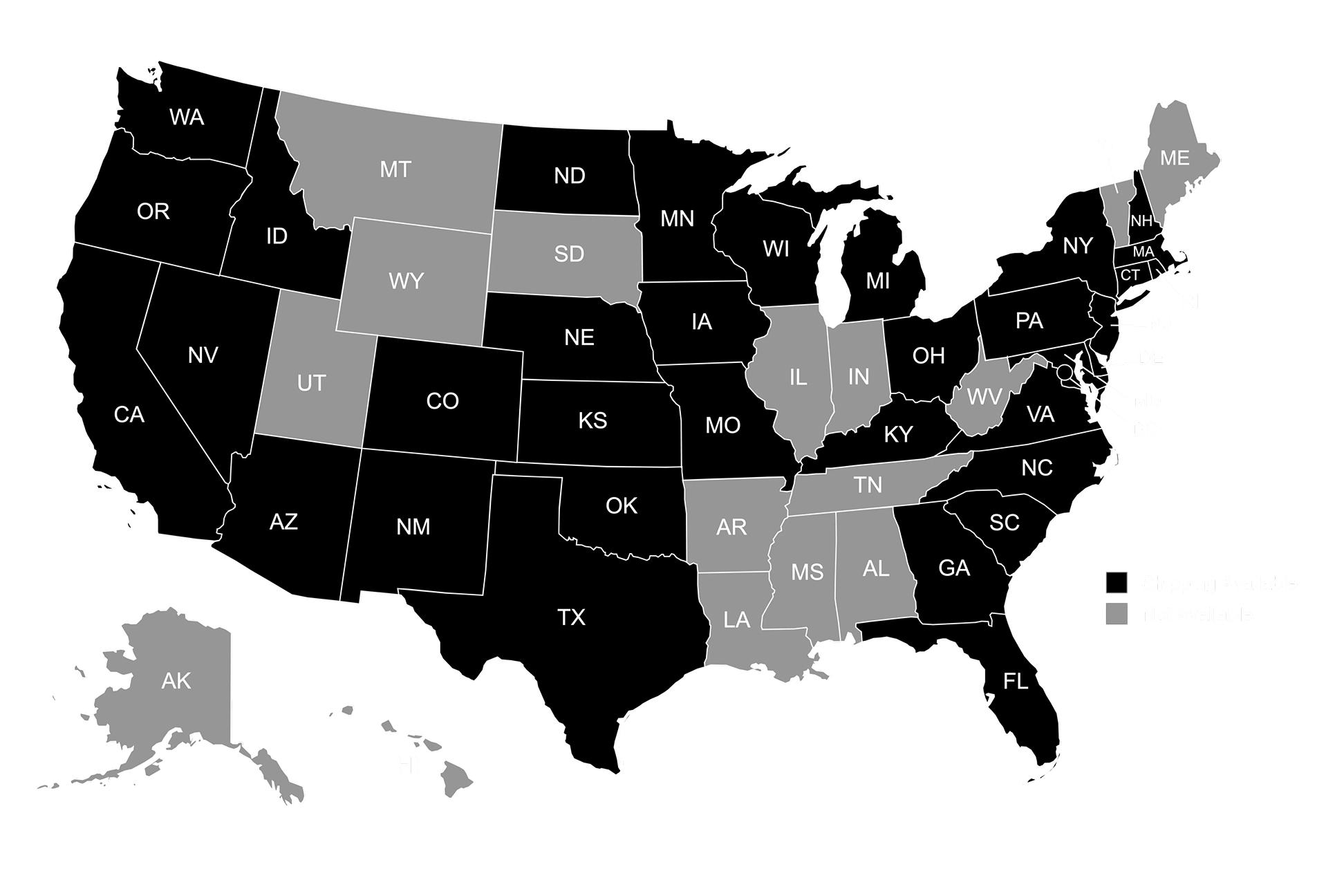 Shipping Available to the Following States.